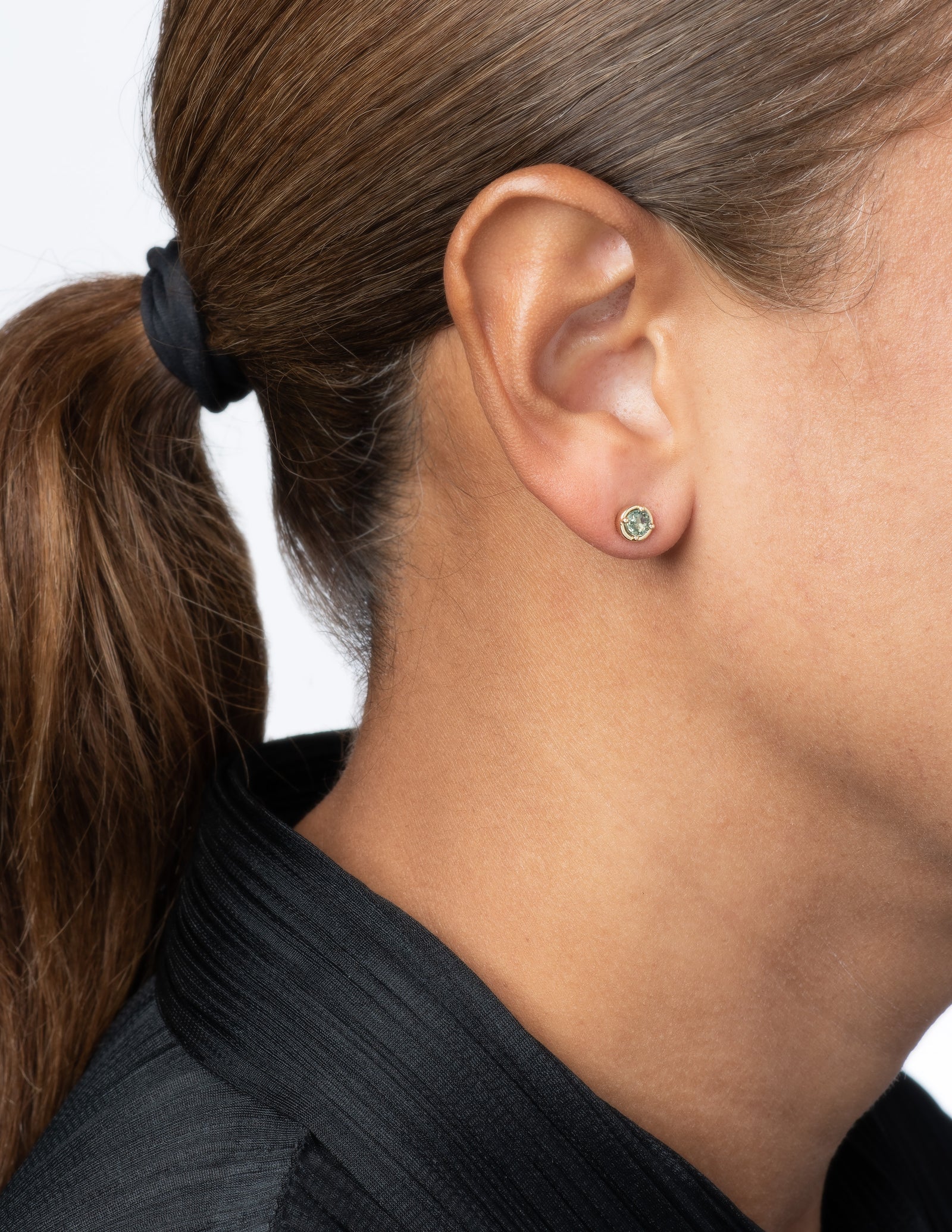Green Sapphire Dot Studs